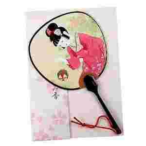JAPOŃSKA POCZTÓWKA WACHLARZ - MAIKO i PIŁKA
