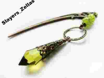 Japońska szpilka igła do koka - Zielony kryształ