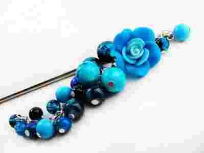 Japońska szpilka igła do włosów koka - róża fimo