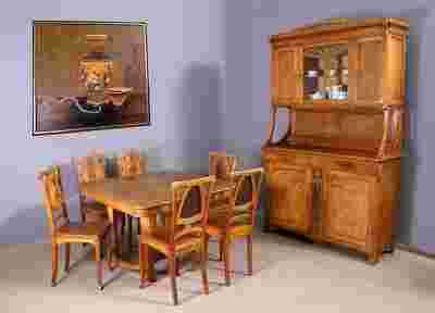 Proponuję Państwu wyjątkowy unikat na naszym rynku antykwarycznym: brzozowy komplet stołowy wykonany na początku ubiegłego stulecia w stylu