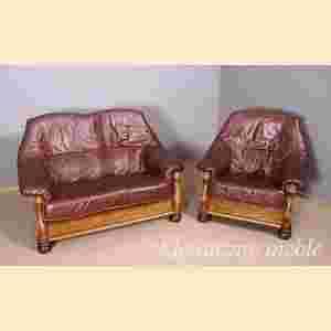 Proponuję Państwu komplet wypoczynkowy wykonany w II połowie XX wieku z wysokogatunkowej skóry naturalnej, na masywnym dębowym stelażu.
