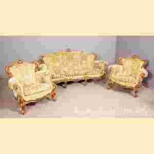 Na tej aukcji licytują Państwo komplet wypoczynkowy składający się z kanapy i dwóch foteli.