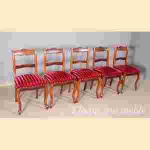 Proponuję Państwu komplet pięciu oryginalnych, starych krzeseł pochodzących z I połowy XIX wieku.