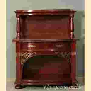 Pomocnik z nadstawką wspartą na kolumnach, posiada ciekawe floralne okucia wykonane z mosiądzu.