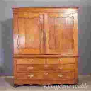 Proponuję Państwu szafę dwudrzwiową z dolną częścią szufladową powstałą ok. 1800 roku. Mebel wykonany w stylu późnego baroku , nawiązujący do początków Biedermeier. Mebel zachowany w stanie dobrym, dokładnie takim jak na zdjęciach w galerii poniżej.