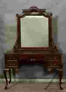 Proponuję Państwu wyjątkowy mebel - toaletkę z lustrem, wykonaną współcześnie z litego drewna egzotycznego w kolorze mahoniu.