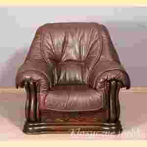 Proponuję Państwu wygodny fotel wykonany współcześnie z wysokogatunkowej skóry naturalnej na masywnym dębowym stelażu.