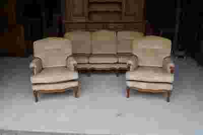 Mam dziś do zaoferowania państwu jasny komplet w stylu ludwikowskim składający się z kanapy 3 osobowej oraz 2 foteli który z pewnością wzbogaci każde wnętrze w którym się znajdzie dodatkowo nadając mu unikalnego stylu, będąc przy tym bardzo komfortowym w użytkowaniu.