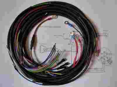 -Wiązka główna (połączenia stacyjki, amperomierza, reflektora przedniego, lampy tylnej, wyłącznika światła stop, klaksonu, prądnicy/iskrownika, kontrolek)