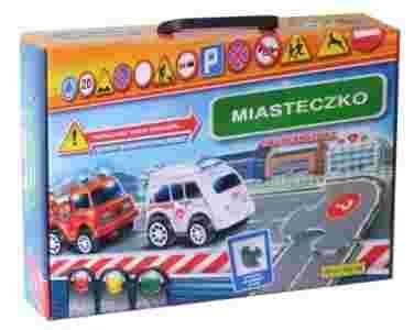Opis produktu:Miasteczko jest grą składającą się z puzzliuliczek, po których gracze poruszają się samochodami służb miejskich zgodnie z przepisami ruchu drogowego. Przed grą kierowcy wybierają dowolne kształty toru jazdy oraz określają liczby okrążeń wg własnego uznania. Do gry dołączone są makiety budynków, które tworzą scenerię.Wygrywa ten, kto pozbędzie się wszystkich kartoników z Zielonym Listkiem i pierwszy dotrze na metę, czyli przejedzie przez całe Miasteczko sprawnie oraz zgodnie z przepisami ruchu drogowego.Zawartość pudełka:4 autka z własnym napędem, 55 kart, 32 puzzle, 8 domków do sklejania, kierownica (prędkościomierz).Gra przeznaczona:dla 2 do 4 graczy, w wieku od lat 4.
