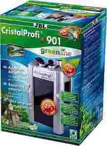 Filtry JBL Cristal Profi e901 Greenline czyszczą akwaria w zamkniętym systemie krążenia. Zainstalowana w głowicy filtra, nie wymagająca konserwacji pompa troszczy się o ciągła cyrkulację wody. Woda z akwarium zostaje wypchana do zbiornika / zbiorników złóż filtracyjnych, gdzie opływa złoża z dołu do góry i oczyszczona wyprowadzona zostaje ponownie do akwarium. Filtr ten nie zasysa się samoistnie. Powietrze znajdujące siępoczątkowo w systemie musi zostaćusunięte przed startem. Aby je usunąć należy uruchomić wbudowany system szybkiego startu.