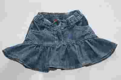 Przedmiotem aukcji jest spódniczka jeansowa dla dziewczynki zakończona falbanką z dwiema kieszonkami, w pasie gumka od środka można rozszerzyć lub przyciągnąć dostosowując szerokość spódniczki do potrzeb, z tyłu ozdabiana wygląda świetnie u dziewczynki stan oceniam na bardzo dobry gorąco polecam