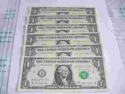 Jeden dolar 5 kolejne numery seryjne.