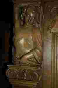 górna część wspierana przez cokolik przez dwie płaskorzeźby młodzieńców,