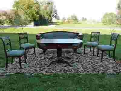 Meble prezentują się bardzo dobrze i w rzeczywistości robią większe wrażenie niż na zdjęciach. Oryginalna politura pięknie wyostrza rysunek i barwę drewna dając mu miły i ciepły charakter. Szczerze polecam ten zestaw ponieważ są to meble o ciekawym kształcie i o dobrej jakości które mogą być ozdobą każdego stylowego wnętrza. Cena z aukcji dotyczy całego zestawu.