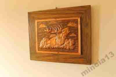 Jeleń na rykowisku płaskorzezba miedz Niemcy