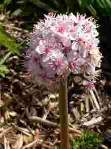 Pochodzi z zachodnich stanów USA. Posiada grube podziemne kłącza, z których wiosną przed rozwojem liści wyrastają kwiatostany do 80 cm wysokości składające się z pojedynczych kwiatów w kolorze blado różowym o średnicy do 1,5 cm. Bardzo żywotna i mrozoodporna, idealna do nasadzeń nadwodnych i pod koronami drzew. Największą ozdobą są tarczowate liście do 0,5 m średnicy osadzone na ogonkach długości nawet 1 m. Tarczownica to prawdziwy gigant wśród rodziny skalnicowatych, świetnie radzi sobie bez pomocy człowieka, jeśli ma tylko wilgotne i ocienione stanowisko. Stosunkowo rzadko spotykana w handlu, a piękna, wartościowa i mrozoodporna roślina.
