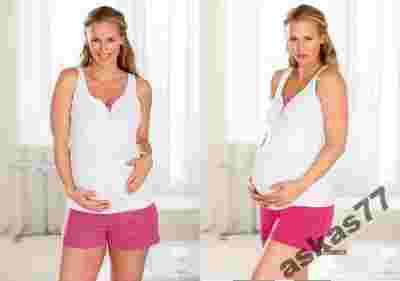 Koszulka zapinana na guziczki z okrągłym dekoltem. Spodenki z gumką w talii, w groszki