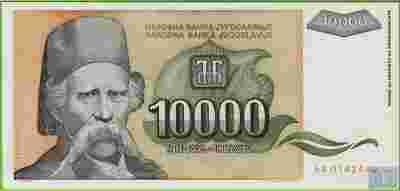 JUGOSŁAWIA 10000 Dinara 1993 P129 AA UNC