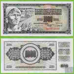 JUGOSŁAWIA 1000 Dinara 1981 P92d UNC DO