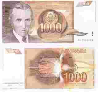 JUGOSŁAWIA 1000 DINARA 1990 P-107 UNC