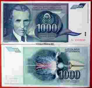 JUGOSŁAWIA 1000 DINARA 1991 TESLA UNC !!!