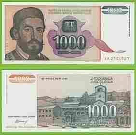 JUGOSŁAWIA 1000 Dinara 1994 P140a UNC AA