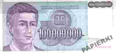 Jugosławia 100 [zasłonięte] 000 Dinara 1993 P-124
