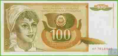 JUGOSŁAWIA 100 Dinara 1990 P105 UNC AP