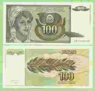 Jugosławia , 100 Dinara 1991 , P108 , stan I (UNC)