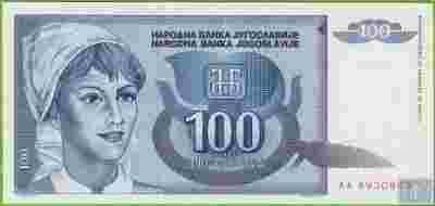 JUGOSŁAWIA 100 Dinara 1992 P112 AA UNC