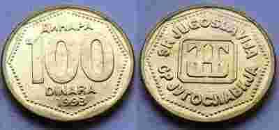 JUGOSŁAWIA 100 DINARA 1993 MENNICZA NOWA EMISJA
