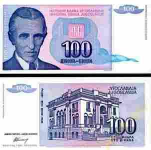 JUGOSŁAWIA 100 Dinara 1994 P-139 UNC