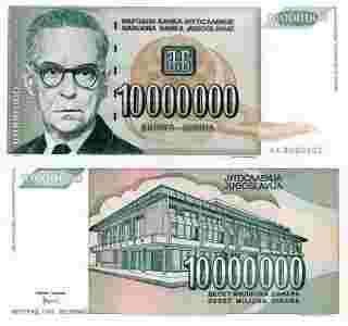 Jugosławia 10 [zasłonięte] 000 dinarów P[zasłonięte]122 19 Stan UNC