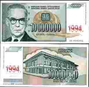 Jugosławia 10 [zasłonięte] 000 DINARA 1994 UNC. P-144