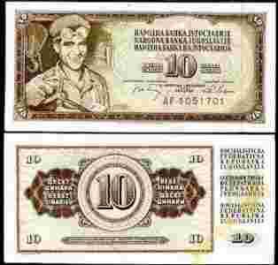 JUGOSŁAWIA 10 Dinarów 1968 P-82 UNC seria AA !!!