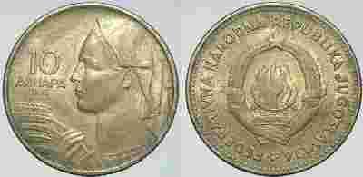 JUGOSŁAWIA - 10 DINARA 1955 r moneta nr 6