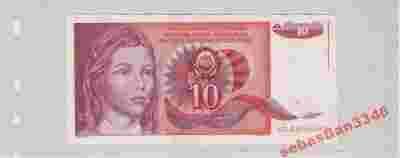 JUGOSŁAWIA 10 DINARA 1990 P-103 UNC