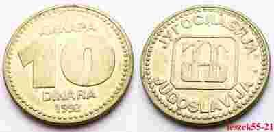 JUGOSŁAWIA 10 DINARA 1992 - RZADKI TYP