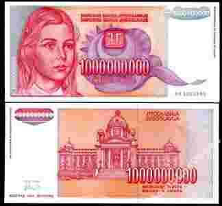 Jugosławia 1 BILION DINARA 1993 UNC. P-126 Ser.AA