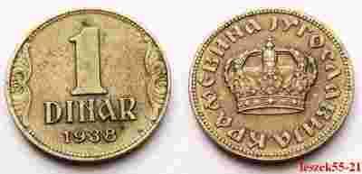 JUGOSŁAWIA 1 DINAR 1938 KORONA