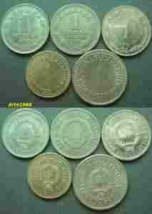 Jugosławia 1 dinar 1965 - 1990 - Zestaw (5)