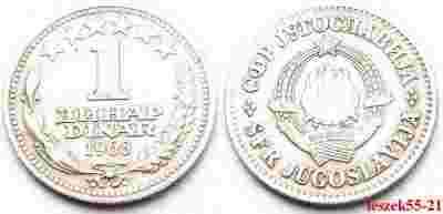 JUGOSŁAWIA 1 DINAR 1968 PODWÓJNY NAPIS