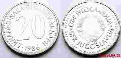 JUGOSŁAWIA 20 DINARA 1986