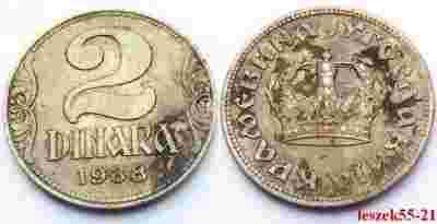 JUGOSŁAWIA 2 DINARA 1938 KORONA