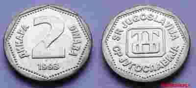 JUGOSŁAWIA 2 DINARA 1993 MENNICZA NOWA EMISJA
