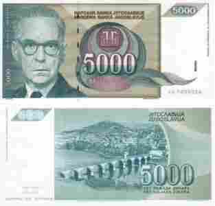 Jugosławia 5000 dinarów P[zasłonięte]115 19 Stan I UNC