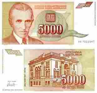 Jugosławia 5000 dinarów P[zasłonięte]128 19 Stan UNC