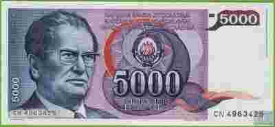 JUGOSŁAWIA 5000 Dinara 1985 P93a CN UNC