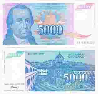 JUGOSŁAWIA 5000 Dinara 1994 P-141 UNC